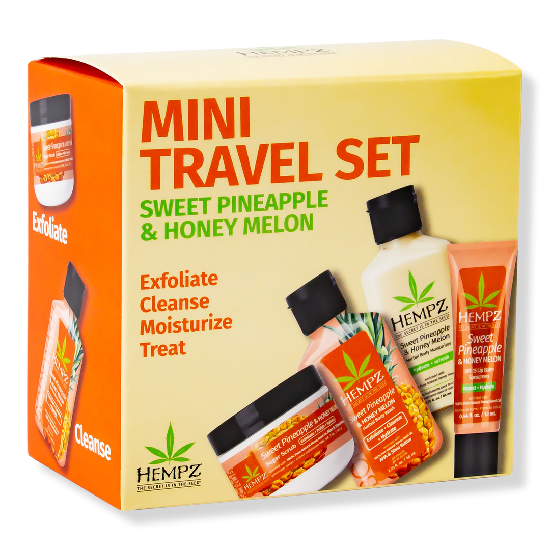 Hempz Sweet Pineapple & Honey Melon Travel Kit is enriched with 100% Pure Organic Hemp Seed Oil and blended with natural extracts to provide dramatic skin hydration and nourishment to help improve the health and condition of skin. Perfect kit for on-the-go!