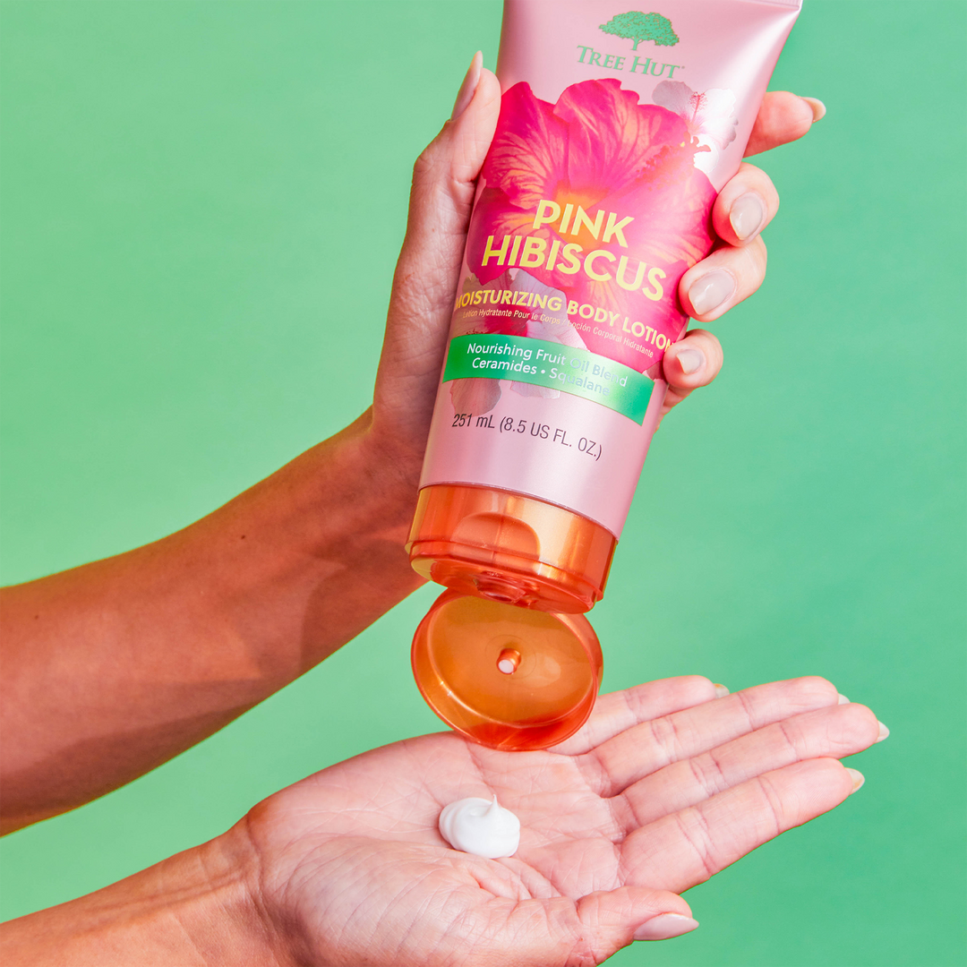 Tree Hut's Moisturizing body lotion is the perfect daily hydration boost to quench thirsty skin. Enjoy the uplifting scent of Pink Hibiscus while the ceramide and squalane-filled formula helps protect the skin barrier and leaves your skin feeling soft and smelling amazing!
